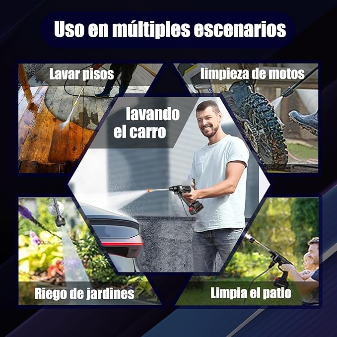 La hidrolavadora portátil que combina potencia, versatilidad y comodidad, diseñada para transformar tus tareas de limpieza en una experiencia rápida, eficiente y sin esfuerzo, mientras ahorras tiempo, agua y energía. Perfecta para autos, jardines y superficies difíciles, con garantía de calidad y durabilidad.